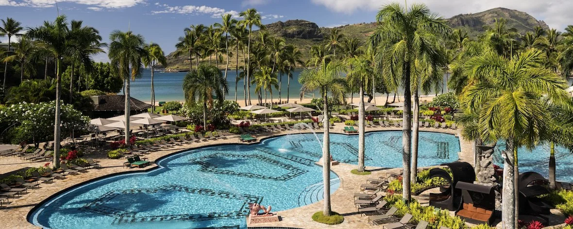 Treat yourself to captivating sunsets, breathtaking bay views and beachside fun at Kaua'i Marriott Resort. Suites with ocean, pool and garden views. Dine at our five popular restaurants and bars. Relax in our family-friendly, heated, outdoor pool - one of the largest in Hawaii. Escape to our luxurious spa for massages and a full range of beauty treatments. Jack Nicklaus signature golf course, the longest in Hawaii, winds past steep cliffs and the bay. Centrally located on Kalapaki Beach in Lihue. Free shuttle to Lihue Airport.